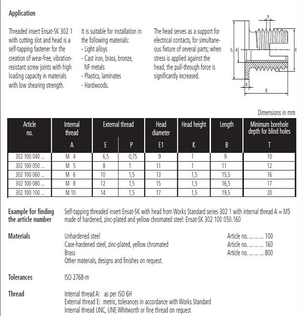 302-1型自攻石家庄丝套是一种新型的紧固件,使用后能够加强螺纹强度。产品有内外牙,将其嵌入塑料,铝合金,铸铁,铜等较软材料内,形成的内螺纹孔就可以具有较高的强度。