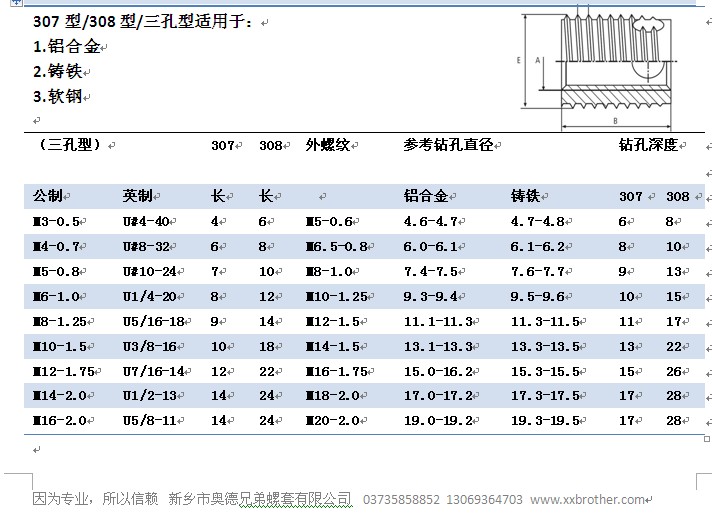 版权所有:新乡市奥德兄弟螺套有限公司 严禁转载或镜像,违者必究! Copyright 2026 307型自攻螺套哪家好?307型自攻护套报价是多少?307型自攻衬套质量怎么样?新乡市奥德兄弟螺套有限公司承接307型自攻螺套,307型自攻护套,307型自攻衬套,自攻螺套,插销螺套,超薄壁螺套等产品. 豫ICP备13023322号-5